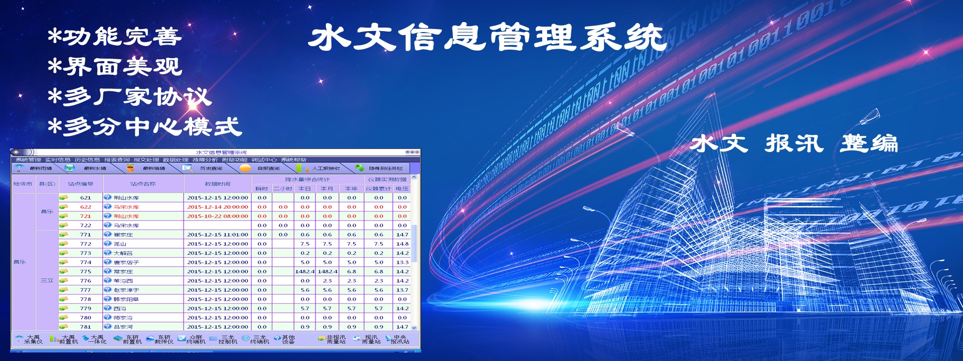 专属为水文定制的中心综合控制系统,集成多种协议,具有发报、编报、接收处理雨、水、墒情、地下水、气象、蒸发等要素数据,并能自动译报新旧水文报文编码,具有极强的纠错查错功能,并具有报汛等特色功能,目前山东各地市、四川部分地市均有应用......