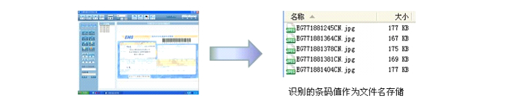 奥普思凯运单采集系统可以在扫描的同时识别快递运单的一维条形码,并将识别的条形码值作为图像文件名存储。